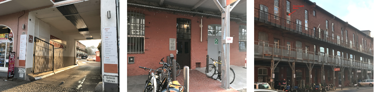 Bitte gehen Sie in den Gewerbehof der Schwedenstrasse 14 zum Fabrikgebäude linker Hand, dort den 1. Aufgang hoch in den 2. Stock und dann (im Gebäude) wieder links zum 2. Raum.